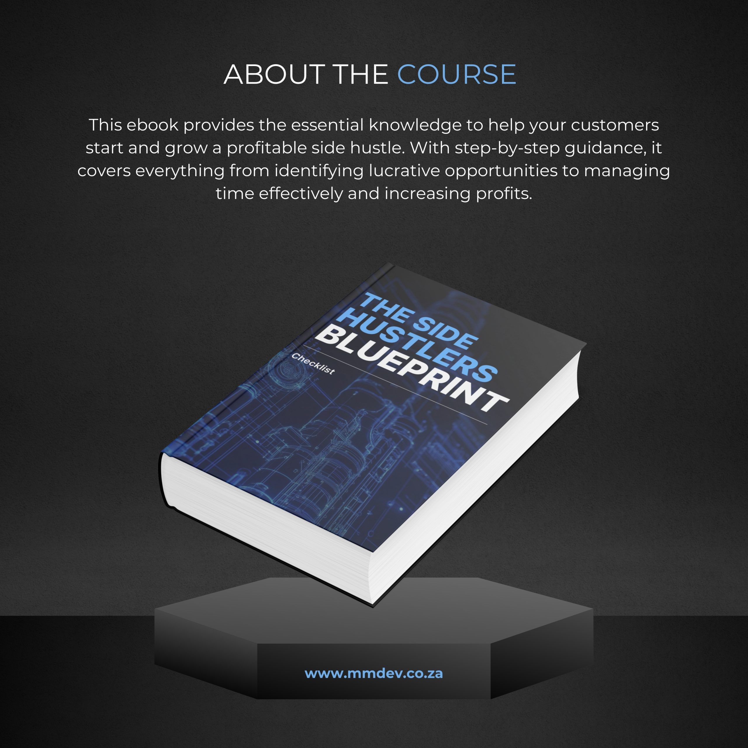 - Informational eBook – A complete guide to finding, starting, and growing a profitable side hustle.